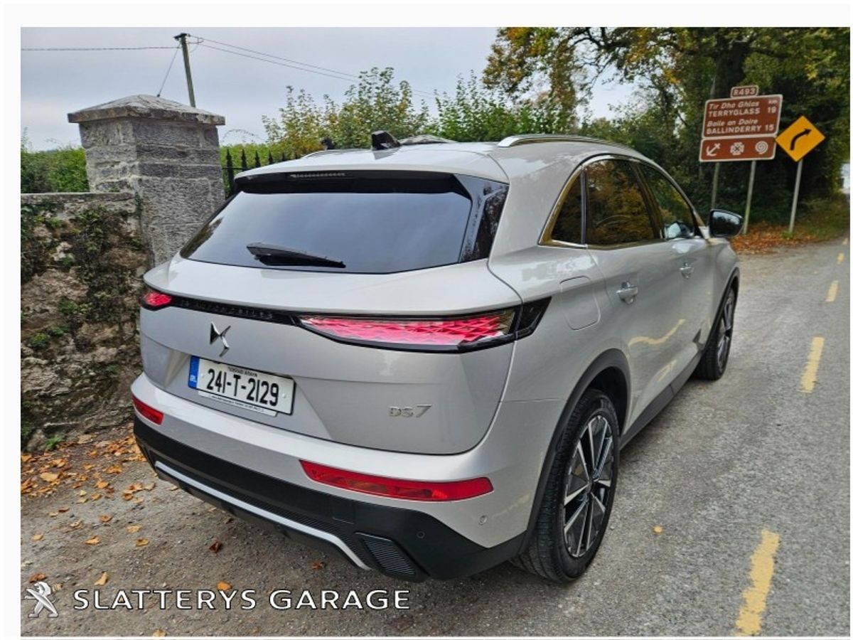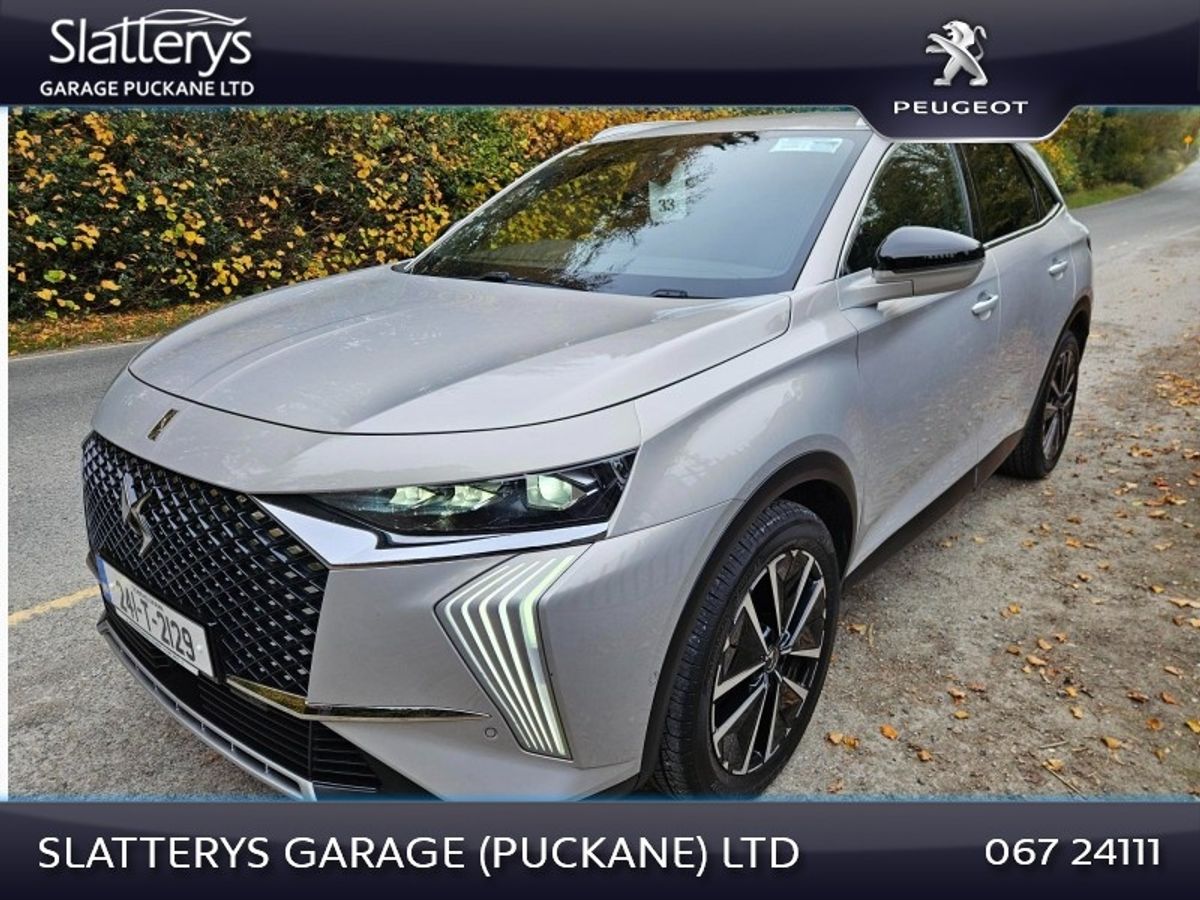 2024 DS7 Rivoli 1.5 HDI Auto 8 speed in excellent condition. This SUV comes fully serviced, valeted & with remaining manufacturers warranty until 27/3/2029 or 100,000 kms. Standard features include Reversing camera, Leather interior, Front electric heated memory seats with massage function, Pixel LED Lights with high beam assist, Privacy glass, Navigation, Apple carplay / Android auto, 19" diamond cut alloys, Keyless entry, Electric Tailgate, Power folding door mirrors, Safety pack, Cruise control, & many more features. Competitive finance packages available. Call Niall, Michael or Andrew on 067/24111 for more details.