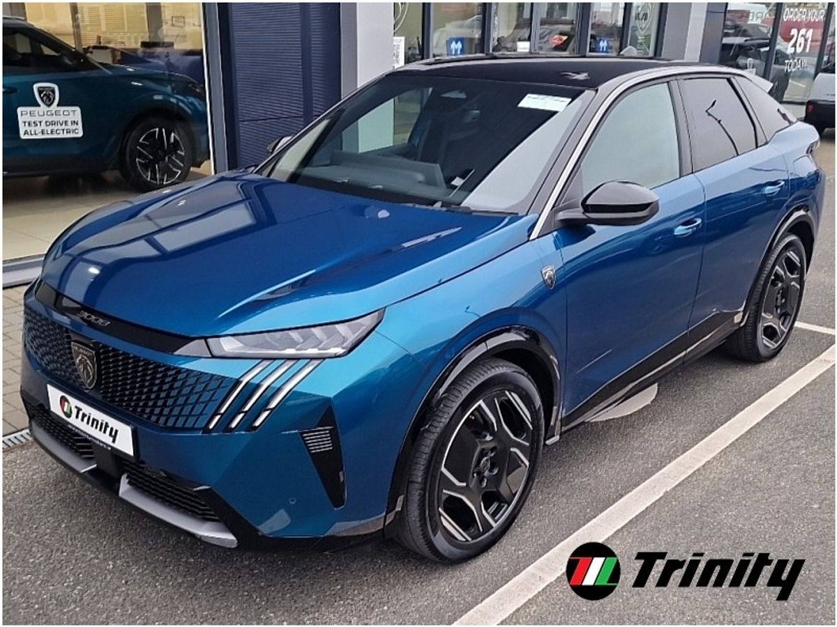 TRINITY PEUGEOT ARE EXCITED TO OFFER THIS STUNNING LOW MILEAGE PEUGEOT 3008 GT TRIM ELECTRIC 73KWH 210BHP AUTOMATIC FINISHED IN OBSESSION BLUE METALLIC PAINTWORK AND IS COMPLEMENTED BY HALF LEATHER & ALCANTARA INTERIOR.