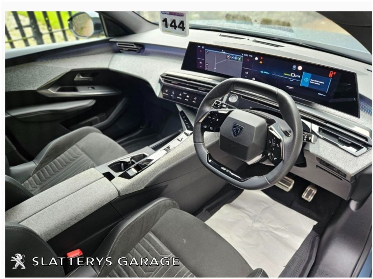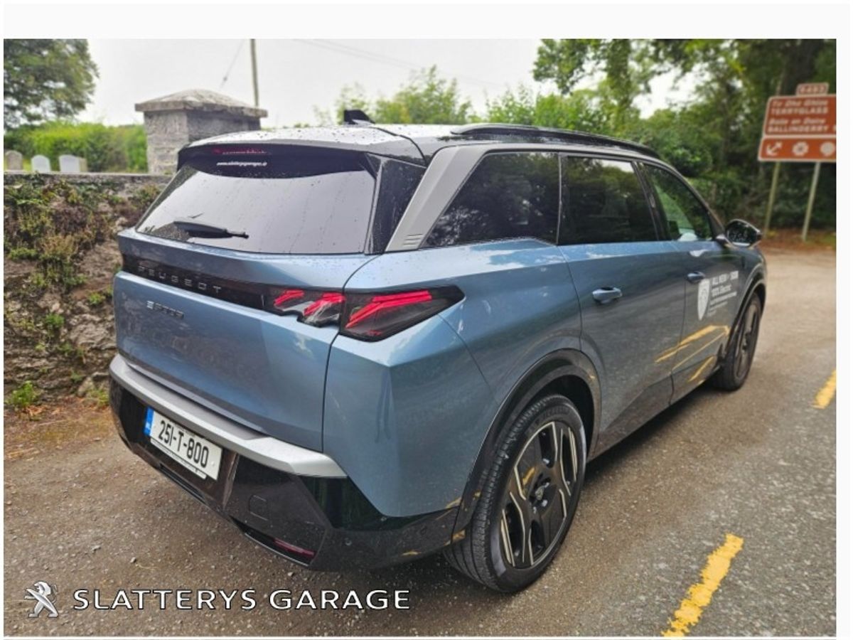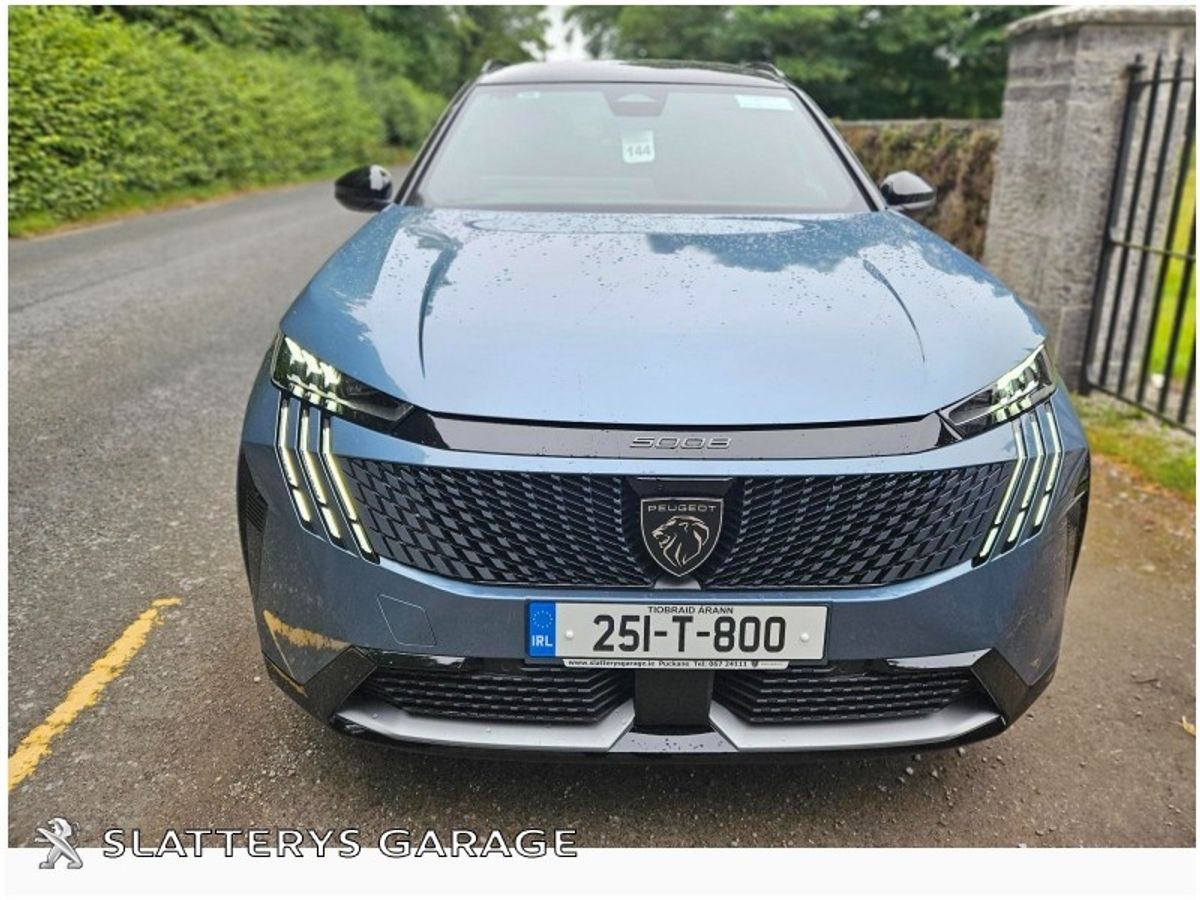 251 5008 GT EV demo model in spotless condition. This SUV 7 seater comes with remaining manufacturers warranty until Jan 2029 or 100,000 kms. Standard features include, 73 kWh battery with 500 kms range, Heat pump, 360 Degree camera, Park assist, Bluetooth interface, Privacy glass, Safety pack, Peugeot Pixel LED lights with Adaptive high beam assist, Electric Tailgate, Upgraded Alcantara upholstery, Rear door sunblinds, 19" Diamond cut alloys, Safety pack, Lane keep assist, Peugeot panoramic i cockpit with 21" floating curved screen, Peugeot open & go, Navigation, Wireless Applecarplay/Android auto, Adaptive cruise control & many more features. Competitive finance packages available. Call Niall, Michael or Andrew on 067/24111 for more details.
