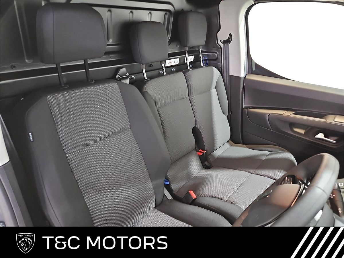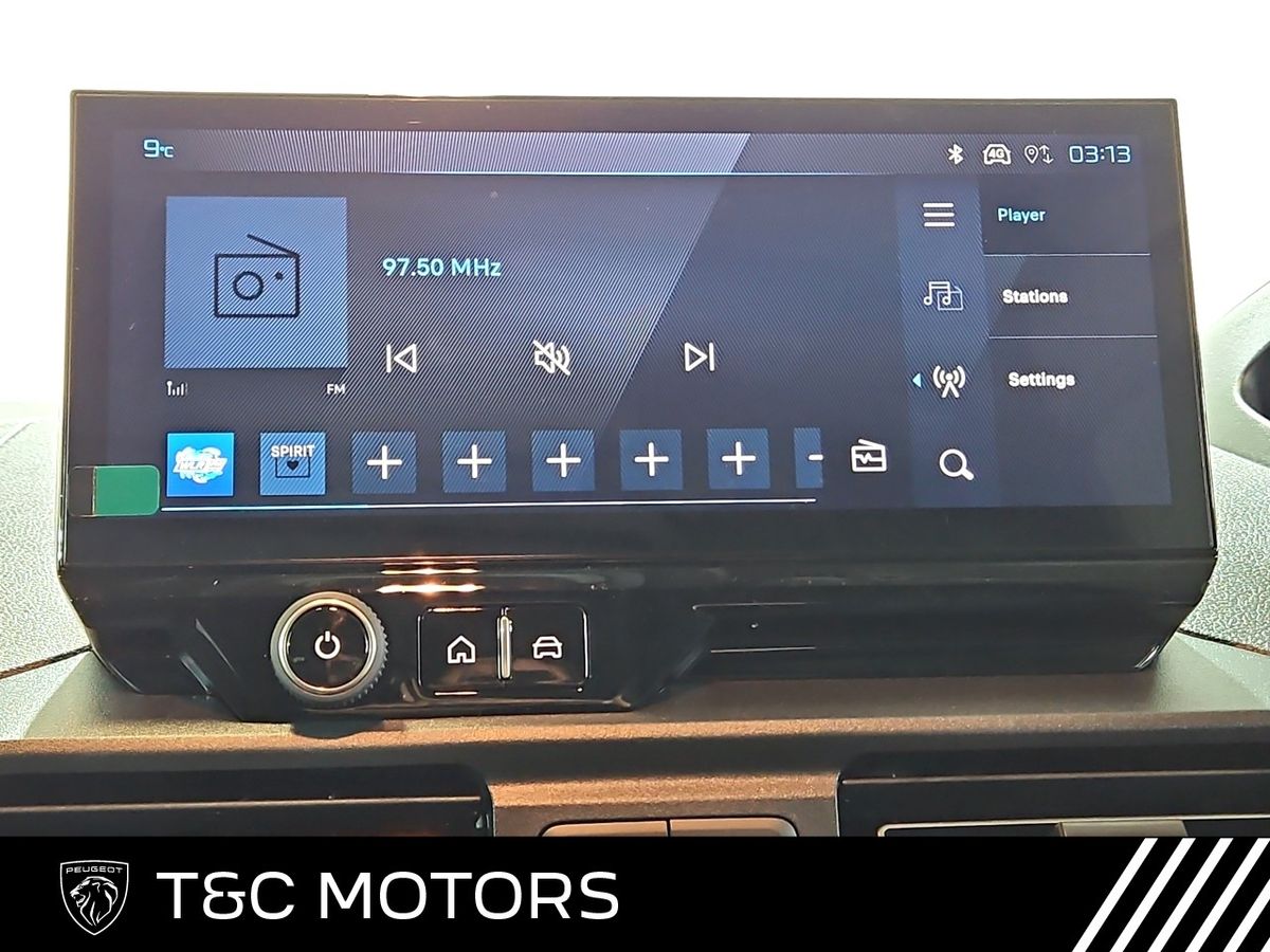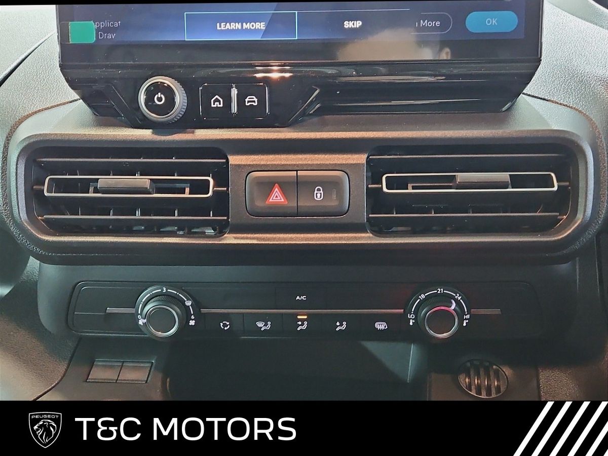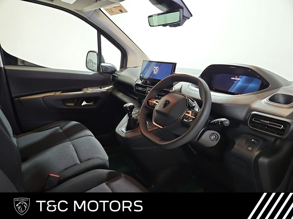 TECHNOLOGY AND INFOTAINMENT • Peugeot i-Connect infotainment system featuring: – 10" Central screen – Mirror screen (Android Auto & Apple CarPlay) – Steering wheel controls and “OK Peugeot” intelligent voice assistant – Two speakers and two tweeters – 2x USB • 10" Digital colour cluster • Dynamic surround view – Digital rear view mirror with side view – Blind spot detection – Front parking sensors – Flankguard (Detection of fixed obstacles) COMFORT AND CONVENIENCE • Fog lamps • Automatic window wipers • Folding wing mirrors EXTERIOR STYLE • Body coloured rear bumpers• Black painted door handles• Body coloured sliding door rails• 16” Steel wheels with full wheel trims• Gloss black wing mirror covers
